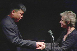 デンバー中央劇場では満席の750人。この演奏会では、太田総領事のスピーチを戴き、またAHAN本部より新中古コンピューター100台の寄贈式もありました。